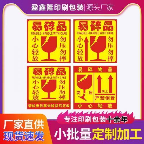 易碎品贴纸易损警示贴小心轻放勿压勿摔不干胶标签快递箱标签批发